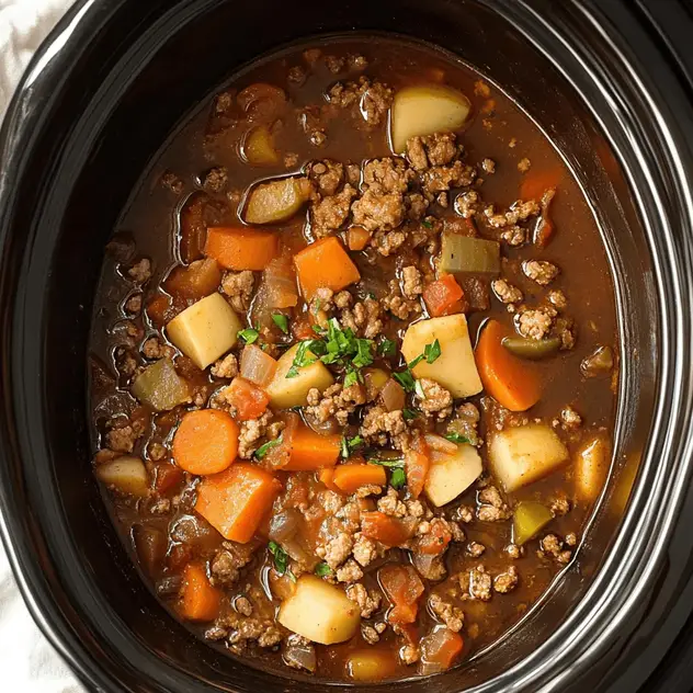 Trefwoorden: armeluisstoof, slowcooker recepten, eenpansgerecht, budget maaltijd, stoofpot met gehakt, winterkost, makkelijke avondmaaltijd, goedkoop gerecht