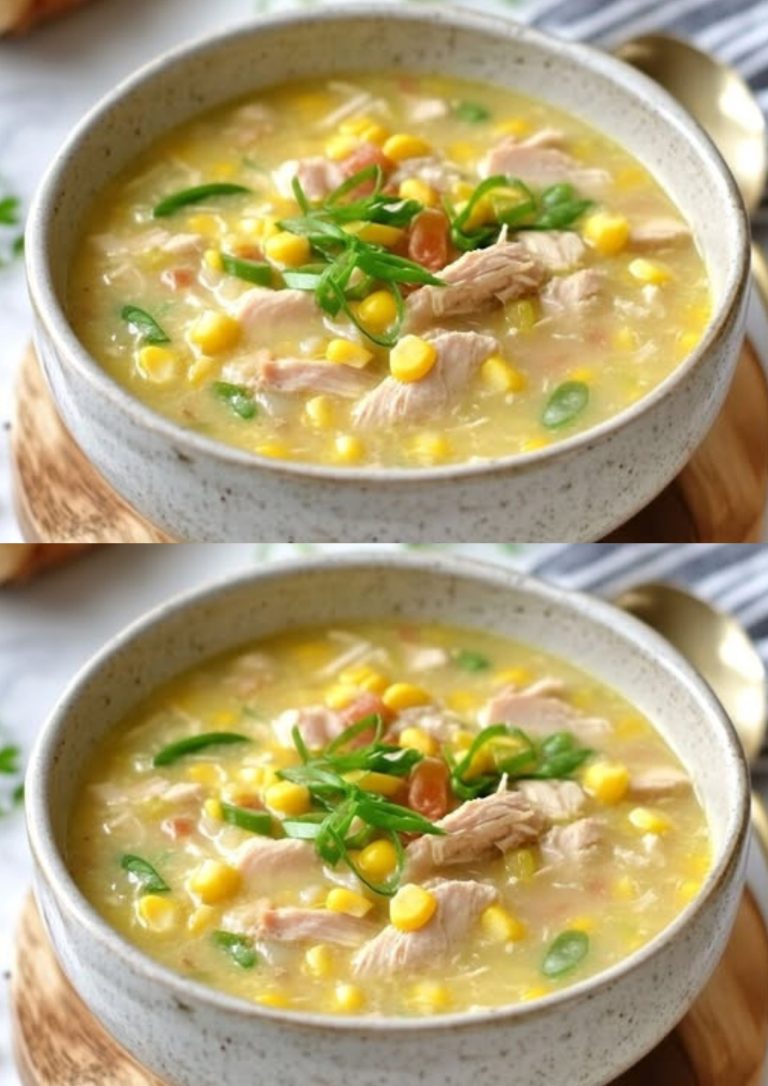 Deze kip-maïssoep vormt een perfect hoofdgerecht voor koude dagen of als voedzame lunch. De combinatie van mals kipvlees, zoete maïs en aromatische kruiden maakt dit tot een gerecht dat zowel voldoening als comfort biedt.