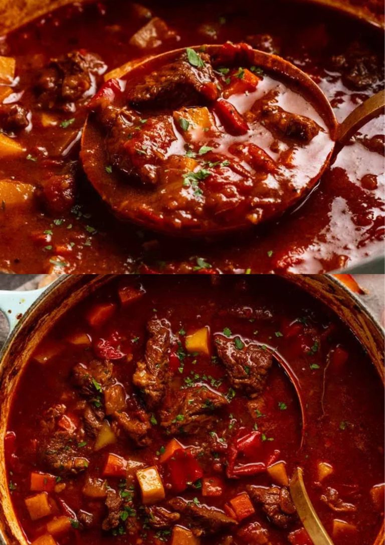 Deze Hongaarse Goulash is perfect voor koude dagen en grote gezelschappen. Het gerecht wordt vaak zelfs lekkerder als het een dag staat, waardoor het ideaal is om vooraf te bereiden voor een diner met gasten.
