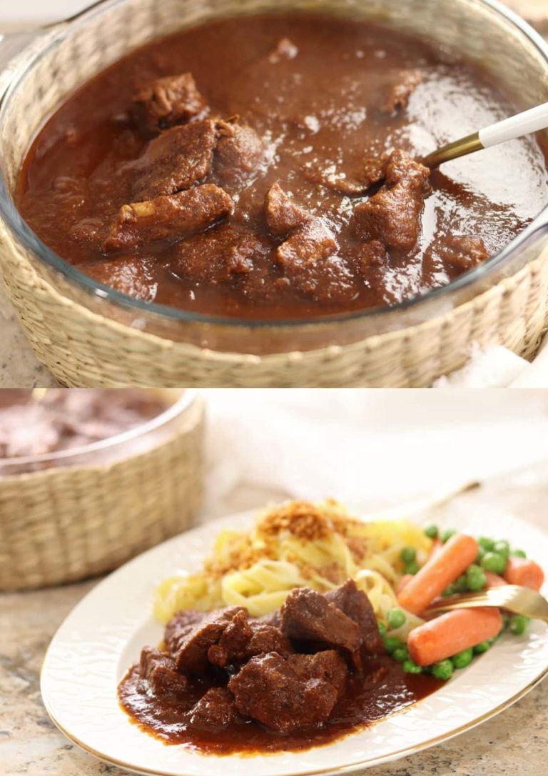 Serveertip: Serveer traditioneel met Semmelknödel (broodknoedels), aardappelpuree of spätzle. Garneer met fijngehakte peterselie en zure room.