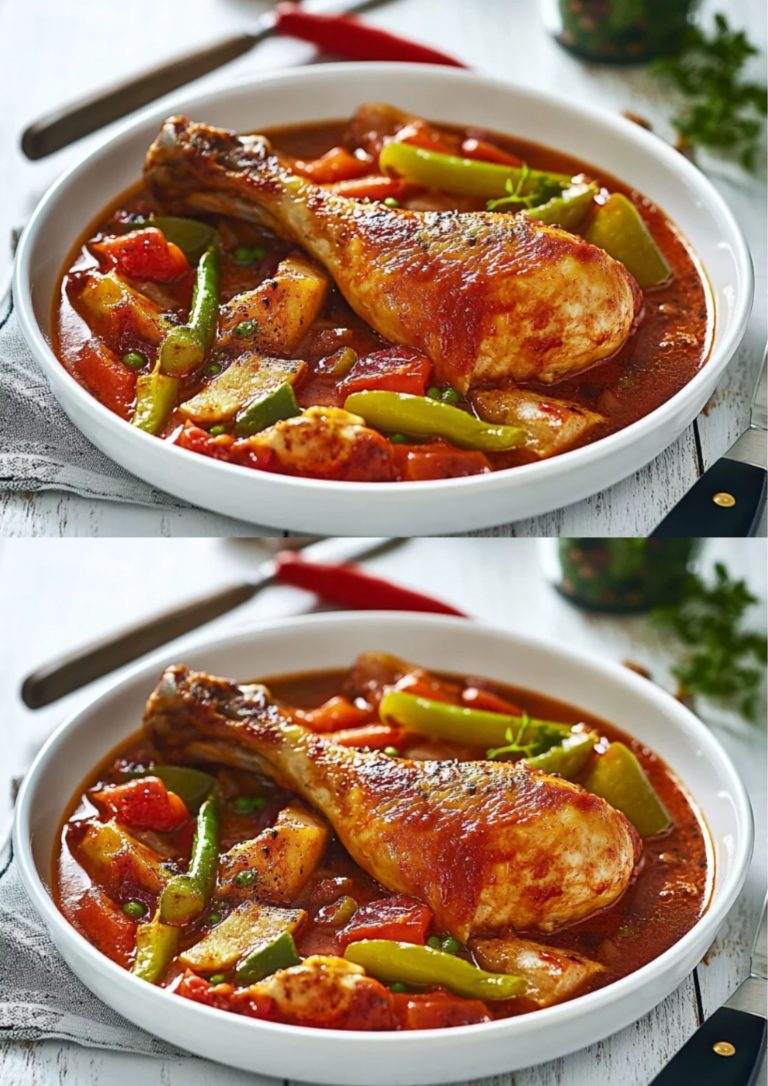 Deze Baskische kip serveer ik het liefst met vers zuurdesembrood om de rijke saus op te soppen. Een frisse groene salade met een eenvoudige vinaigrette vormt de perfecte begeleiding.