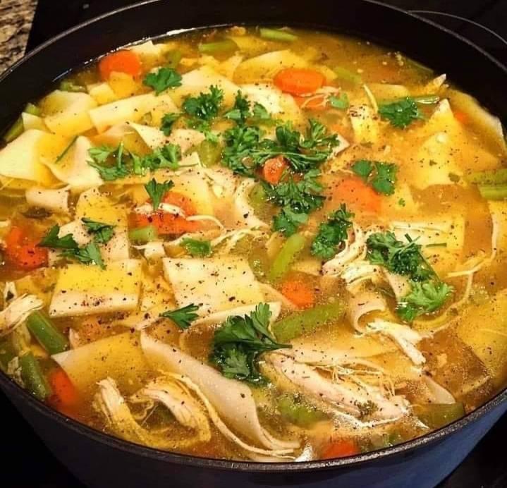 • 6 kopjes (1,5 liter) kippenbouillon, bij voorkeur natriumarm
