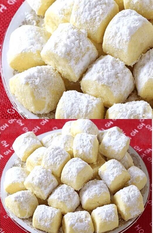 Laat de droomstukjes een beetje afkoelen en bestuif ze met poedersuiker terwijl ze nog lauw zijn.