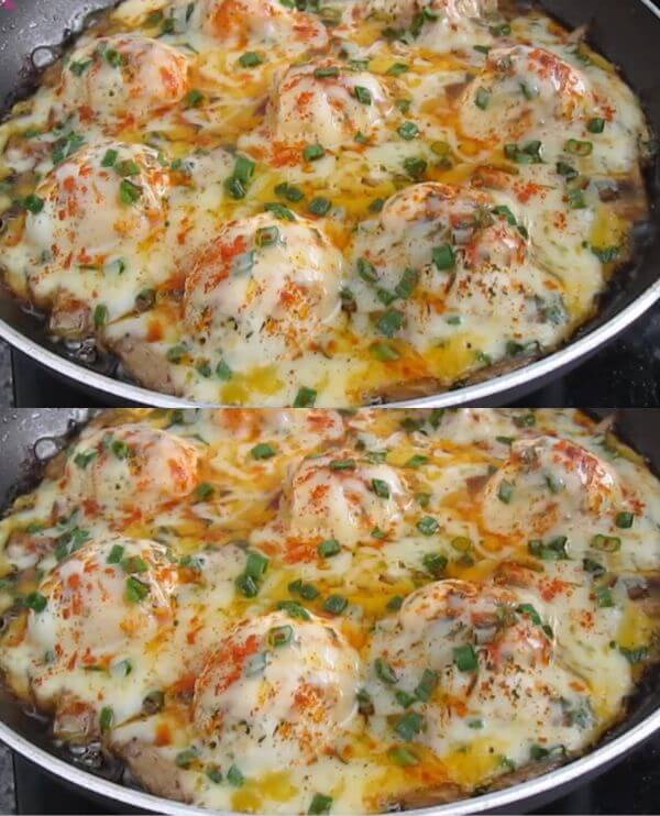 - Serveer: Serveer het gerecht warm en geniet van de combinatie van zachte eieren, hartige groenten en romige kaas.