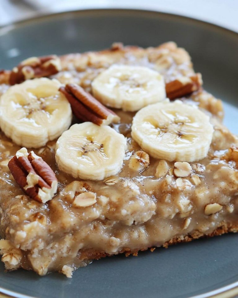- Bak de havermout-bananenontbijt in de voorverwarmde oven gedurende 25-30 minuten. De randen moeten goudbruin zijn en het midden moet stevig aanvoelen.