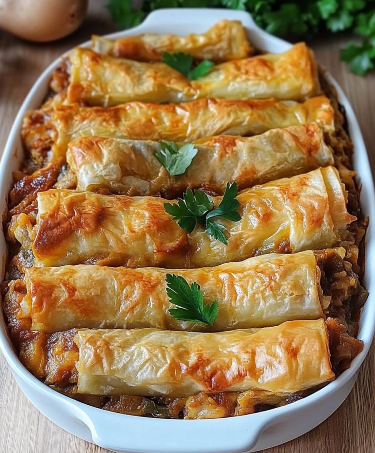Bak de rolletjes in de voorverwarmde oven gedurende 25-30 minuten, tot het filodeeg goudbruin en knapperig is. Houd ze goed in de gaten tegen het einde van de baktijd om te voorkomen dat ze verbranden.