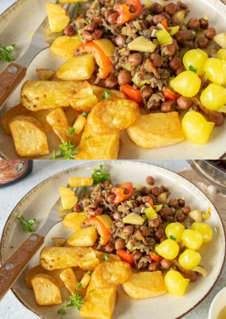 De kapucijnerschotel is een smakelijk en veelzijdig gerecht dat perfect is voor een doordeweekse maaltijd. Deze combinatie van gerookte spekjes, rundergehakt, groenten en de zoetheid van appel maakt het een unieke en verrukkelijke ervaring. Dit gerecht is niet alleen eenvoudig te bereiden, maar ook een echte crowd-pleaser!