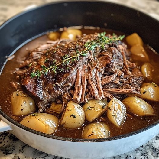Als chef gespecialiseerd in slow cooking presenteer ik u een verfijnde versie van de klassieke pot roast, een gerecht dat comfort food naar een hoger niveau tilt.