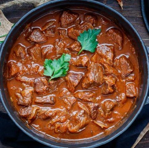 Deze klassieke goulash is het perfecte comfort food, vol met diepe smaken en malse stukjes vlees. Geniet van dit hartverwarmende gerecht met je favoriete bijgerecht en laat je meevoeren door de traditionele smaken van deze Hongaarse klassieker.