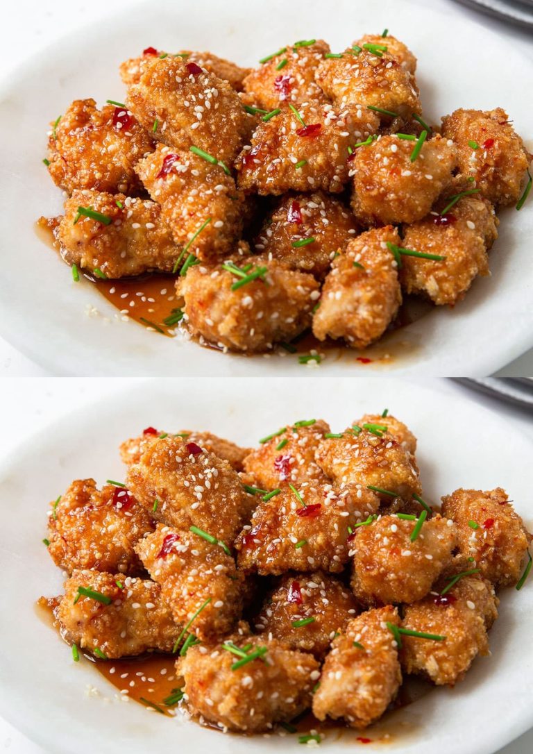 Dit heerlijke Aziatisch geïnspireerde recept combineert krokant gepaneerde kip met een zoet-pittige honing-knoflooksaus. Perfect als borrelhapje of als hoofdgerecht met rijst.
