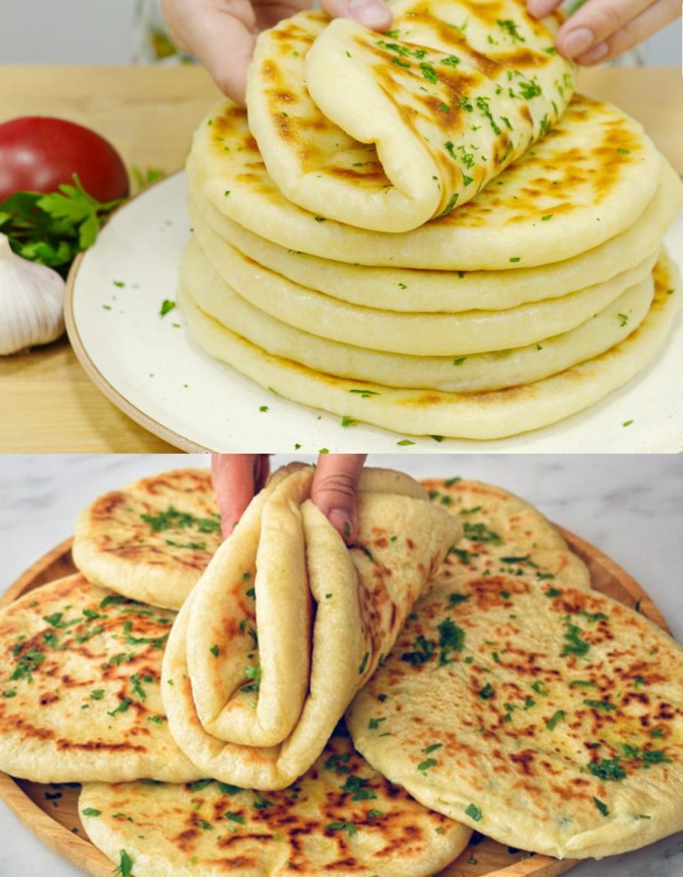 Eet smakelijk! Deze mega zachte knoflookflatbreads zijn snel en eenvoudig te maken, en dankzij hun geweldige smaak zullen ze al snel een vaste favoriet in je keuken worden. Perfect om te serveren bij soepen, stoofschotels, salades of gewoon als snack!