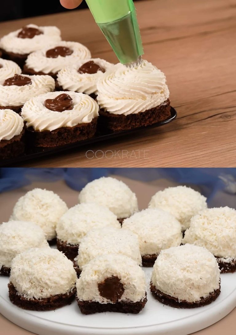 - Bestrijk de cake: Snijd de afgekoelde cake horizontaal doormidden. Smeer een laag Nutella over de onderste helft van de cake. Bedek met een laag van de geklopte room en plaats de bovenste helft van de cake er weer bovenop. Bedek de gehele cake met de resterende room en strooi er kokosvlokken overheen.