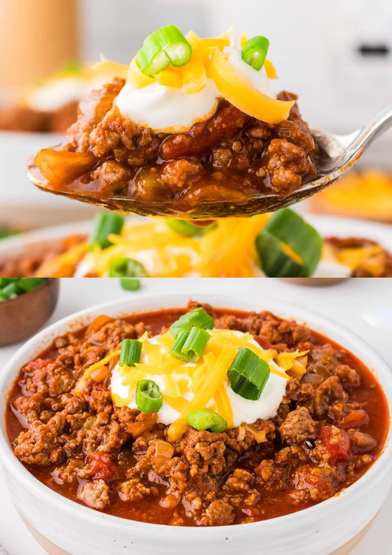 Deze hartverwarmende chili combineert sappig rundvlees met pittige Italiaanse worst voor een rijke, kruidige maaltijd die perfect is voor koude dagen.