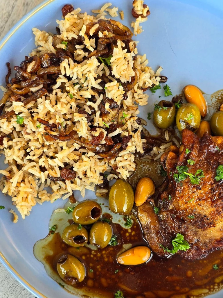 Deze rijst met baharat, rozijnen en gekarameliseerde ui is een eenvoudig maar verrukkelijk gerecht dat perfect samengaat met een breed scala aan gerechten. De combinatie van hartige uien, warme baharatkruiden en zoete rozijnen maakt het tot een ideaal bijgerecht of hoofdgerecht. Het is snel te maken en biedt een verrassende smaakervaring met minimale inspanning.