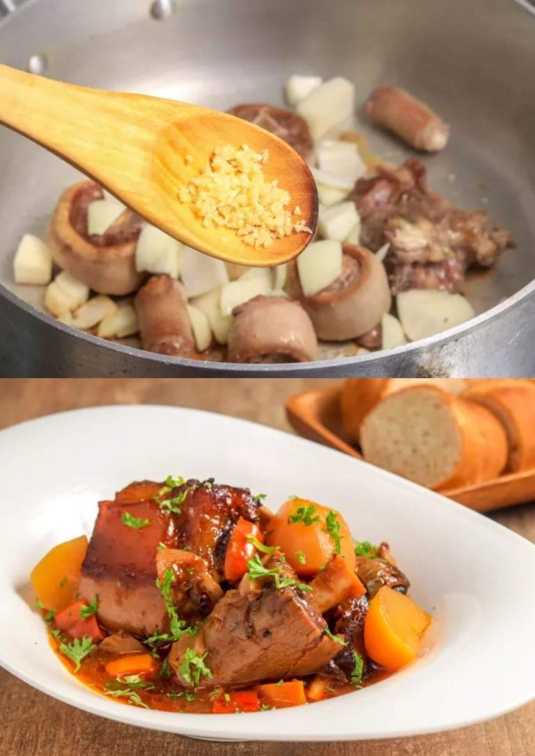 Na de kooktijd, controleer je de stoofpot en pas indien nodig de smaak aan met extra zout en peper. Serveer de stoofpot warm met een stuk knapperig brood of over een bedje van rijst. De combinatie van malse ossenstaart en smaakvolle groenten maakt dit gerecht tot een stevige en bevredigende maaltijd.