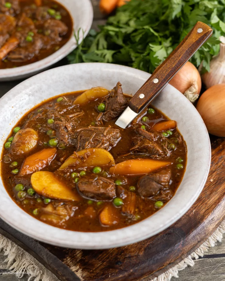 De klassieke Belgische rundvleesstoofpot, ook wel gekend als ‘stoofvlees’ of ‘carbonade flamande’, is een gerecht dat generaties lang families heeft verenigd rond de eettafel. Deze hartverwarmende bereiding, verrijkt met het karaktervolle Guinness bier, brengt de essentie van de Belgische keuken tot leven. Als chef-kok heb ik deze receptuur verfijnd om de perfecte balans te vinden tussen traditionele smaken en moderne bereidingstechnieken.