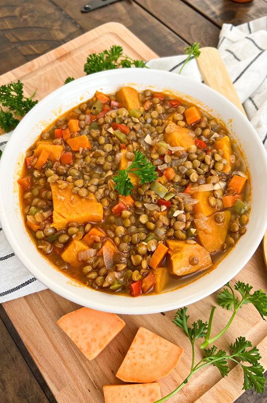 Vegetarische Linzenstoofpot met Zoete Aardappel: Een Hartverwarmend Familierecept