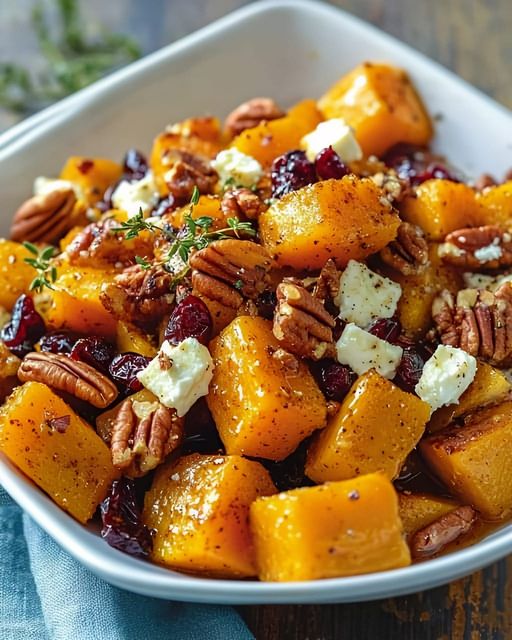 Zoete en Hartige Geroosterde Butternutpompoen met Honing, Veenbessen, Pecannoten en Feta